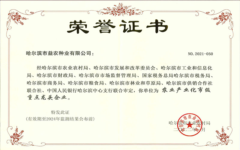 农业工业化市级重点龙头企业